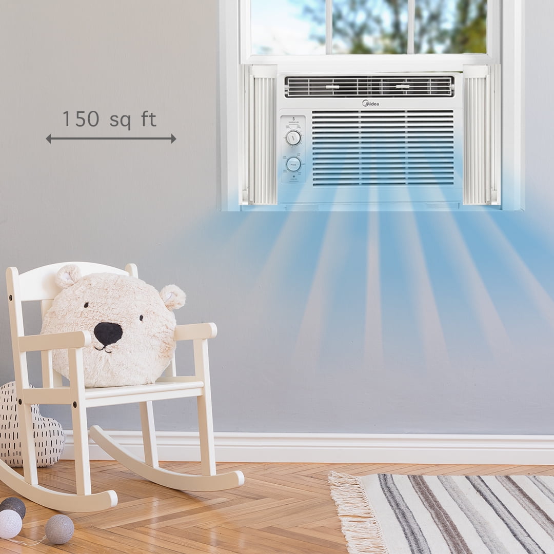 Stay comfortable all summer long with the Midea 5,000 BTU Mechanical Window Air Conditioner. With two different cooling settings and two different fan speeds - there is no doubt you will find the setting that provides you with optimal comfort. The Midea 5,000 BTU Mechanical Window Air Conditioner is ideal for cooling smaller spaces up to 150 square feet. The Midea 5,000 BTU Mechanical Window Air Conditioner comes with a clean filter indicator button that lights up when it is time to remove and clean it. The Midea 5,000 BTU Mechanical Window Air Conditioner is designed to fit windows 23"-36" wide, with a minimum height of 13"